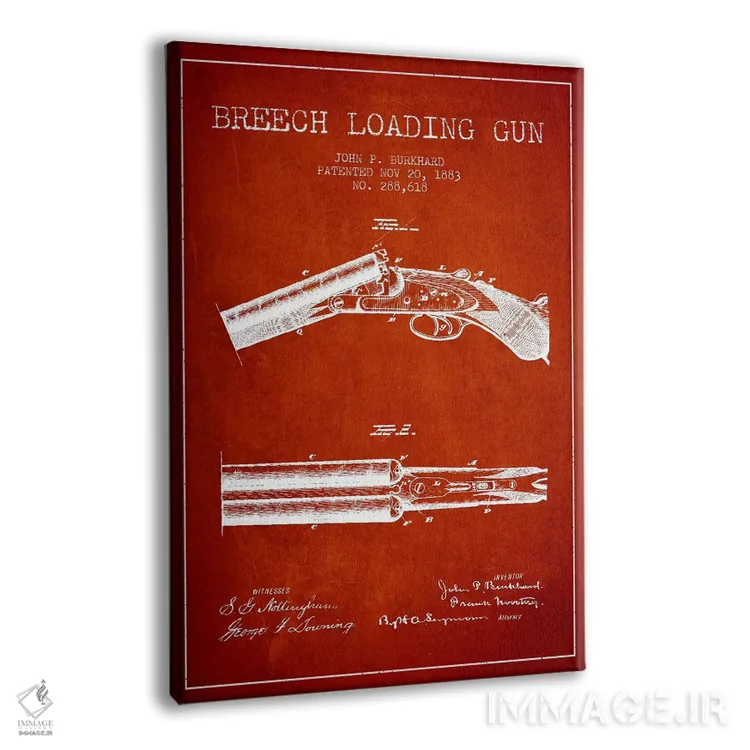 تابلو نقشهٔ ثبت اختراع تفنگ برونینگ قرمز اثر پیکسل کهنه (استودیو/نام هنری) - نمای پرسپکتیو محصول