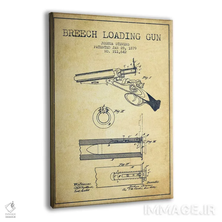 تابلو نقشهٔ ثبت اختراع اسلحه شاتگان استیونز قدیمی اثر پیکسل کهنه (استودیو/نام هنری) - نمای پرسپکتیو محصول