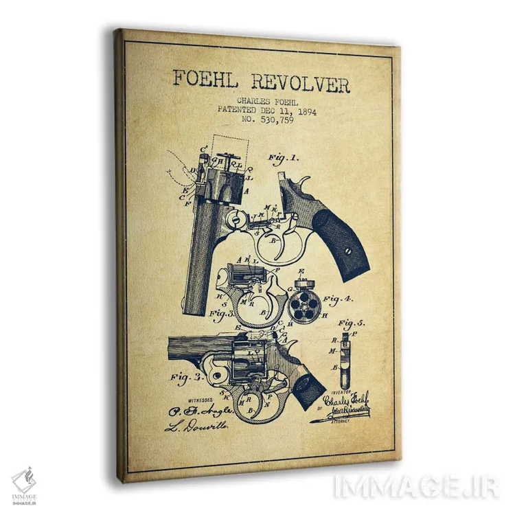 تابلو طرح اختراع هفت‌تیر چارلز فوئل (جوهر) اثر پیکسل کهنه (استودیو/نام هنری)