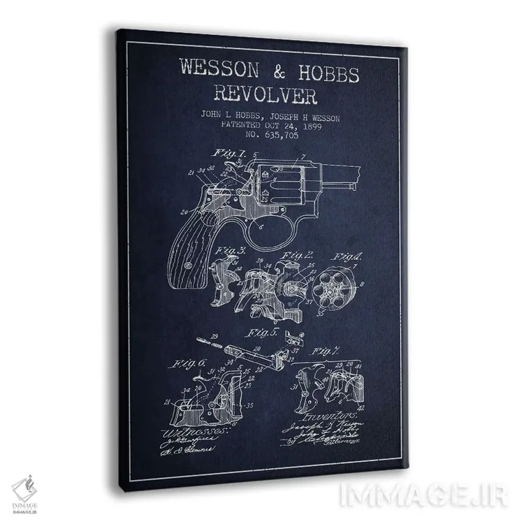 تابلو نقشهٔ ثبت اختراع رولور وسن و هابز سرمه‌ای اثر پیکسل کهنه (استودیو/نام هنری) - نمای پرسپکتیو محصول