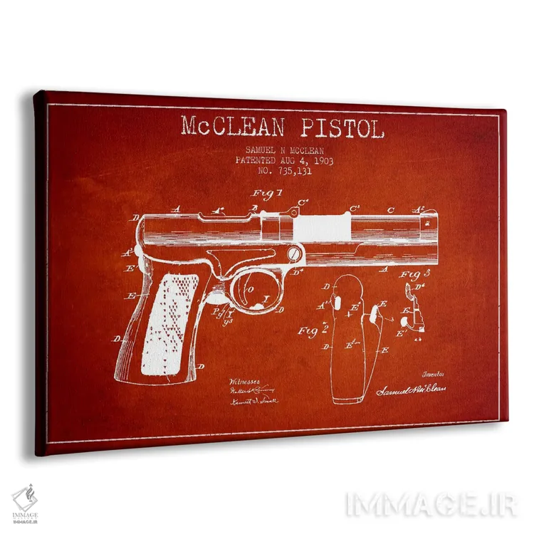 تابلو نقشهٔ ثبت اختراع تپانچه مک‌کلین قرمز اثر پیکسل کهنه (استودیو/نام هنری)