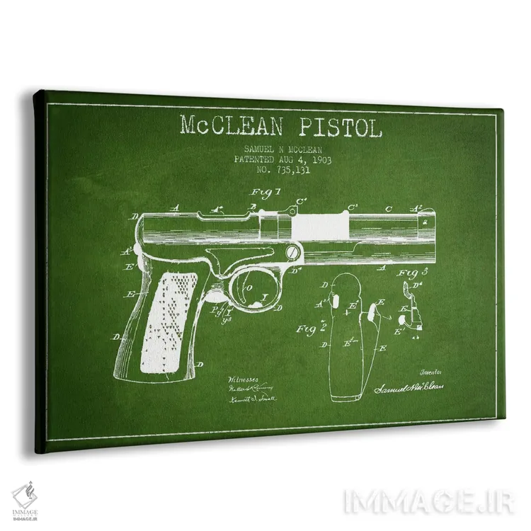 تابلو نقشهٔ ثبت اختراع تپانچه مک‌کلین سبز اثر پیکسل کهنه (استودیو/نام هنری)