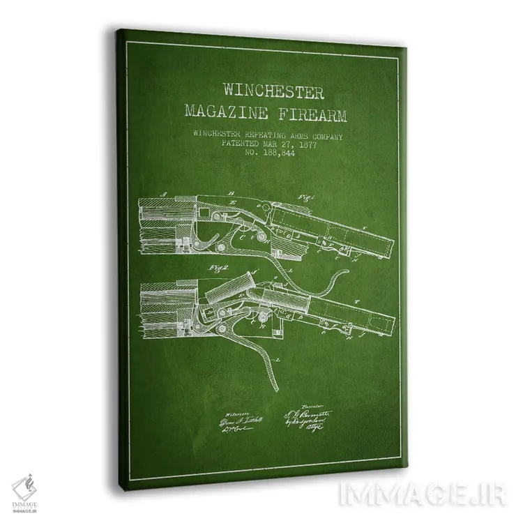 تابلو نقشهٔ ثبت اختراع اسلحه وینچستر سبز اثر پیکسل کهنه (استودیو/نام هنری) - نمای پرسپکتیو محصول