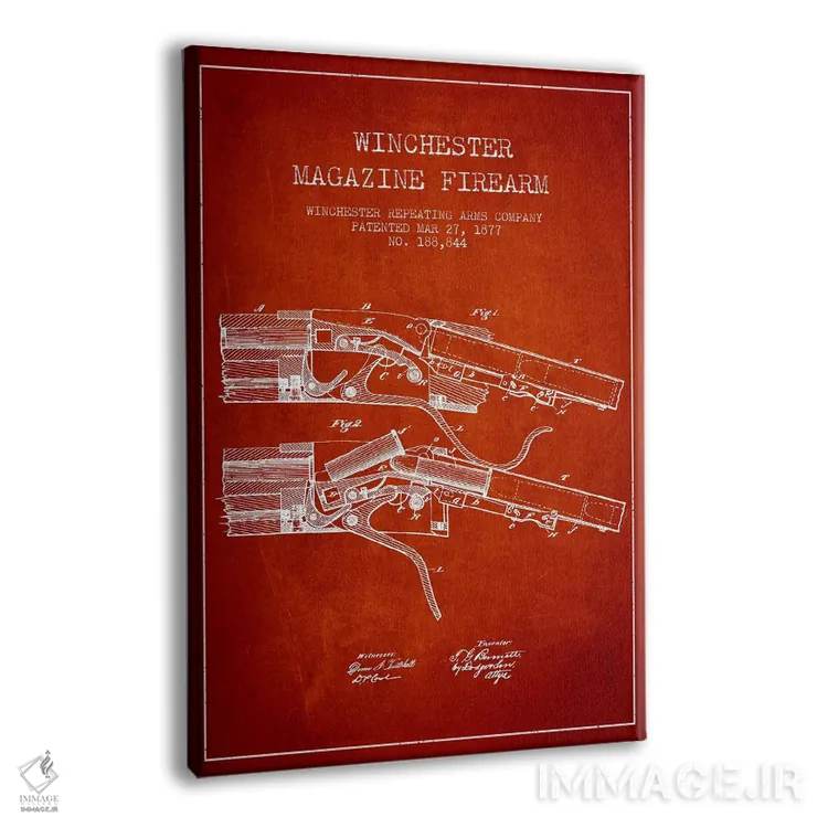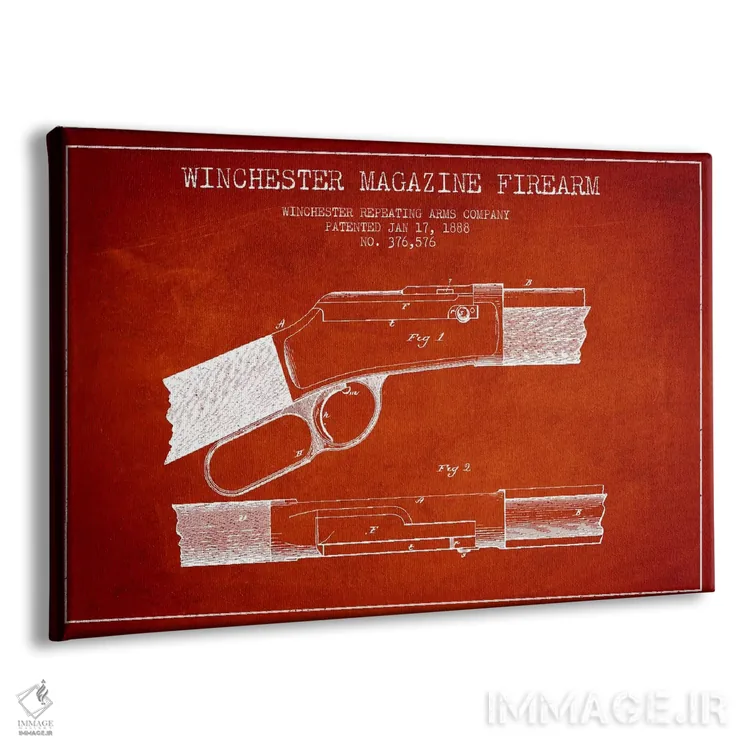 تابلو نقشهٔ ثبت اختراع اسلحه وینچستر قرمز اثر پیکسل کهنه (استودیو/نام هنری) - نمای پرسپکتیو محصول