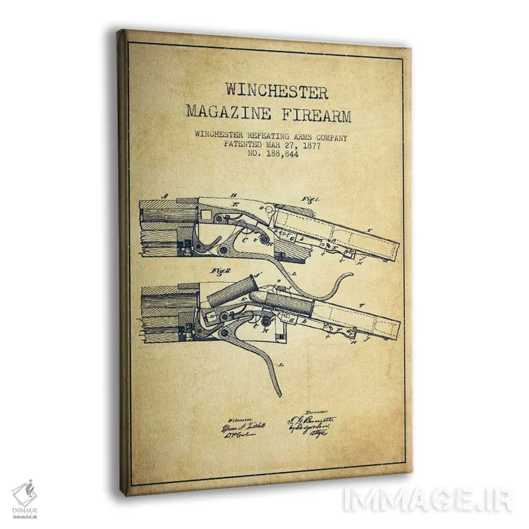 تابلو نقشهٔ ثبت اختراع تفنگ وینچستر قدیمی اثر پیکسل کهنه (استودیو/نام هنری)