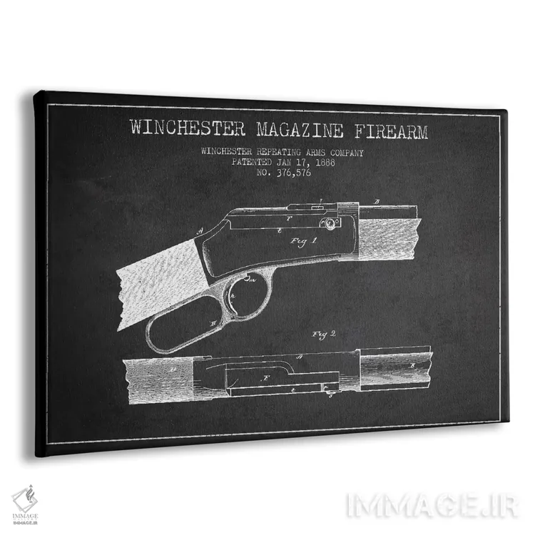 تابلو نقشهٔ ثبت اختراع اسلحه وینچستر ذغالی اثر پیکسل کهنه (استودیو/نام هنری) - نمای پرسپکتیو محصول