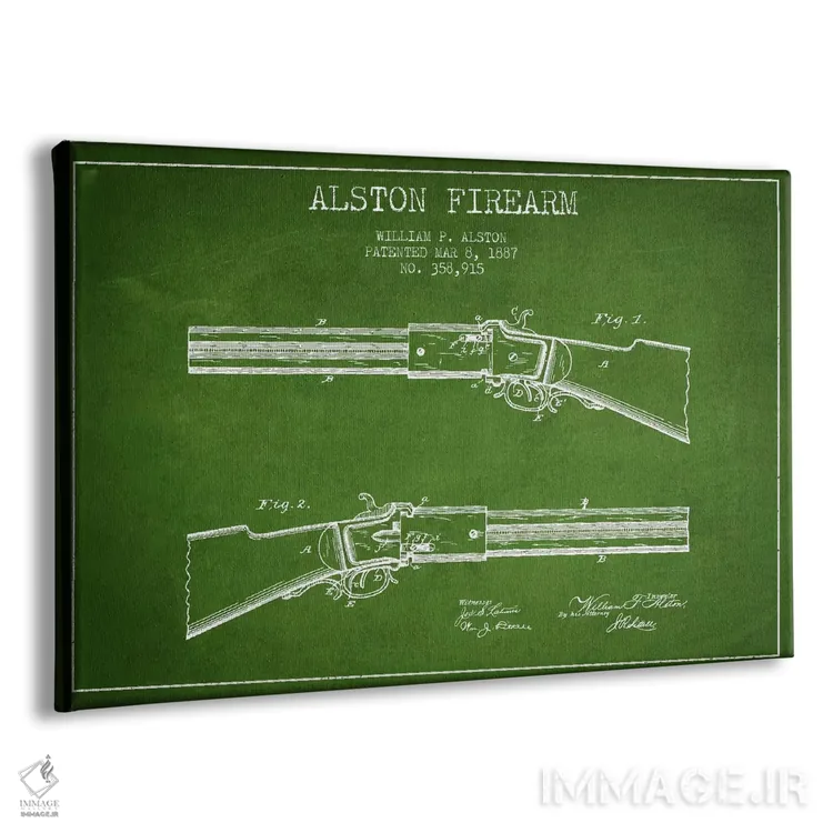 تابلو نقشهٔ ثبت اختراع سلاح آستون سبز اثر پیکسل کهنه (استودیو/نام هنری) - نمای پرسپکتیو محصول