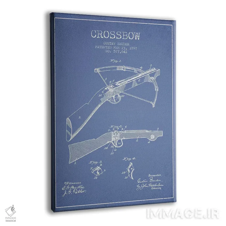 تابلو طرح اختراع کمان زنبورکی گوستاو برودر (شبکه آبی) اثر پیکسل کهنه (استودیو/نام هنری) - نمای پرسپکتیو محصول