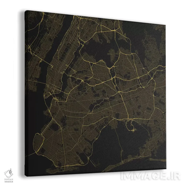تابلو نقشه شهری نیویورک (سیاه و طلایی) اثر اوربانمپ (نقشه شهری؛ استودیو نقشه یا طراح)