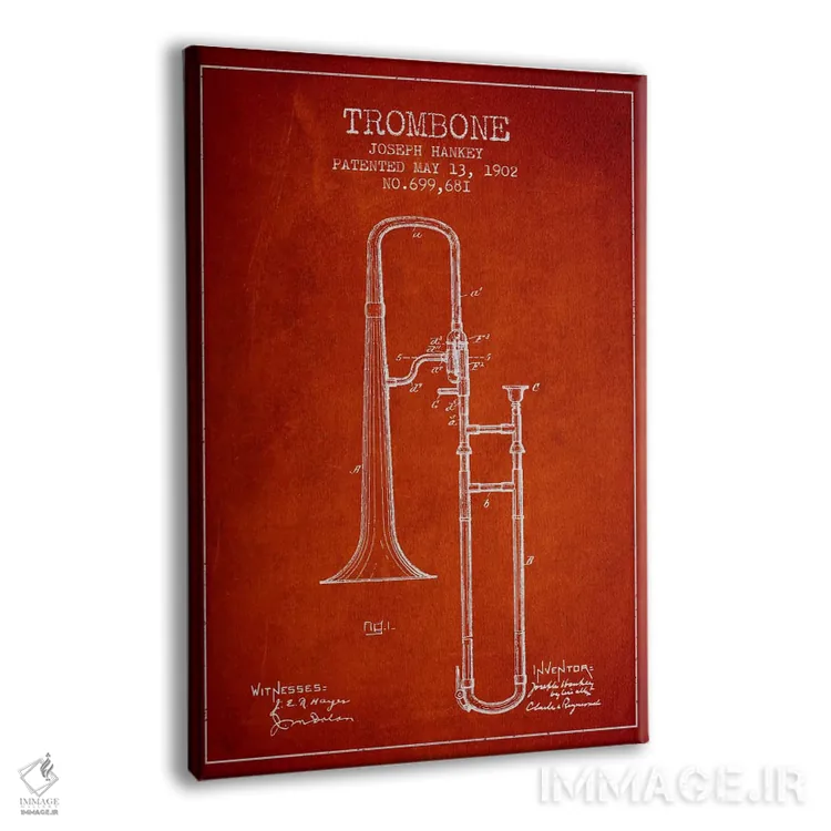 تابلو طرح ثبت اختراع ترومبون (قرمز) اثر پیکسل کهنه (استودیو/نام هنری) - نمای پرسپکتیو محصول