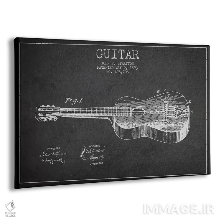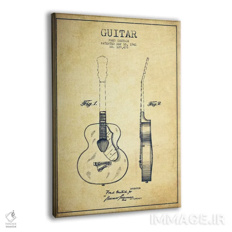 تابلو طرح ثبت اختراع گیتار (کهنه) اثر پیکسل کهنه (استودیو/نام هنری) - نمای پرسپکتیو محصول