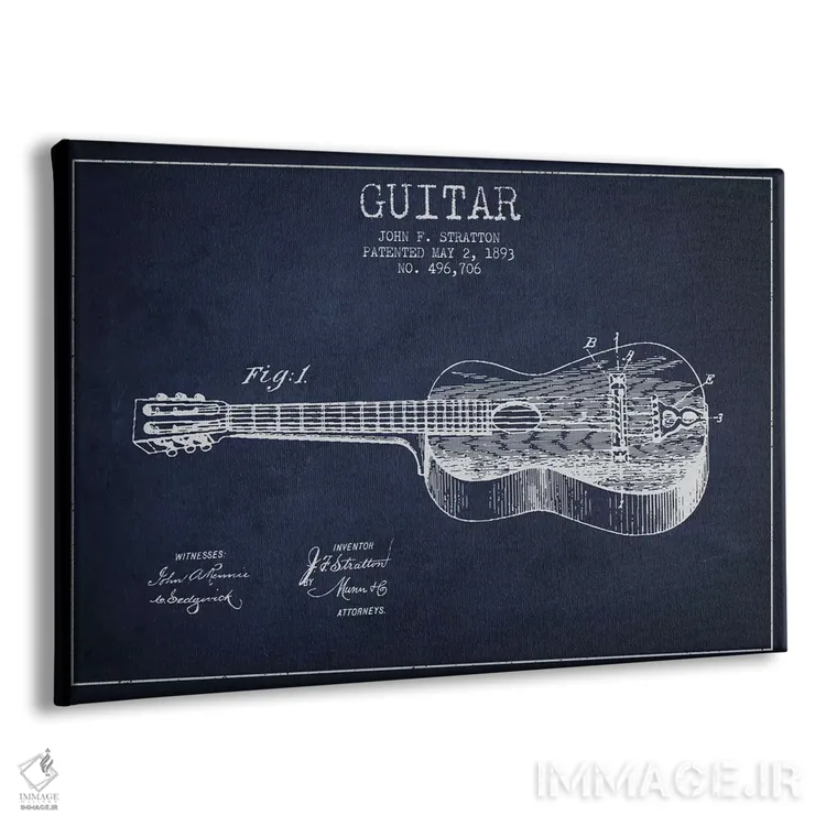 تابلو طرح ثبت اختراع گیتار (آبی نفتی) اثر پیکسل کهنه (استودیو/نام هنری) - نمای پرسپکتیو محصول