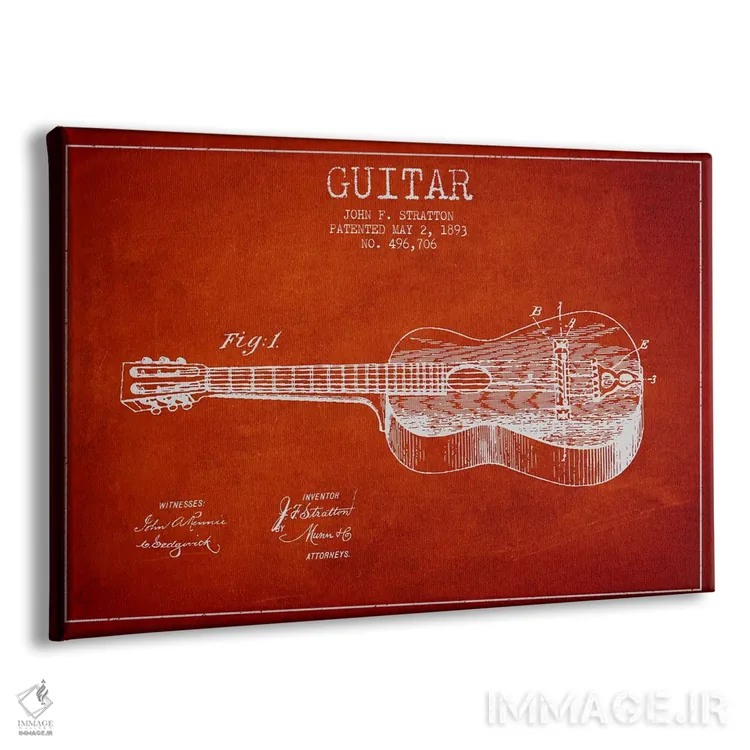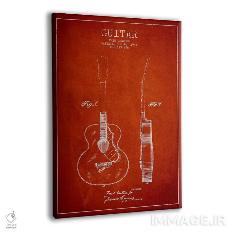 تابلو طرح ثبت اختراع گیتار (قرمز) اثر پیکسل کهنه (استودیو/نام هنری)
