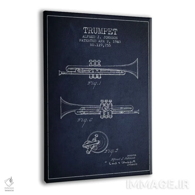 تابلو طرح ثبت اختراع ترومپت (آبی نفتی) اثر پیکسل کهنه (استودیو/نام هنری) - نمای پرسپکتیو محصول