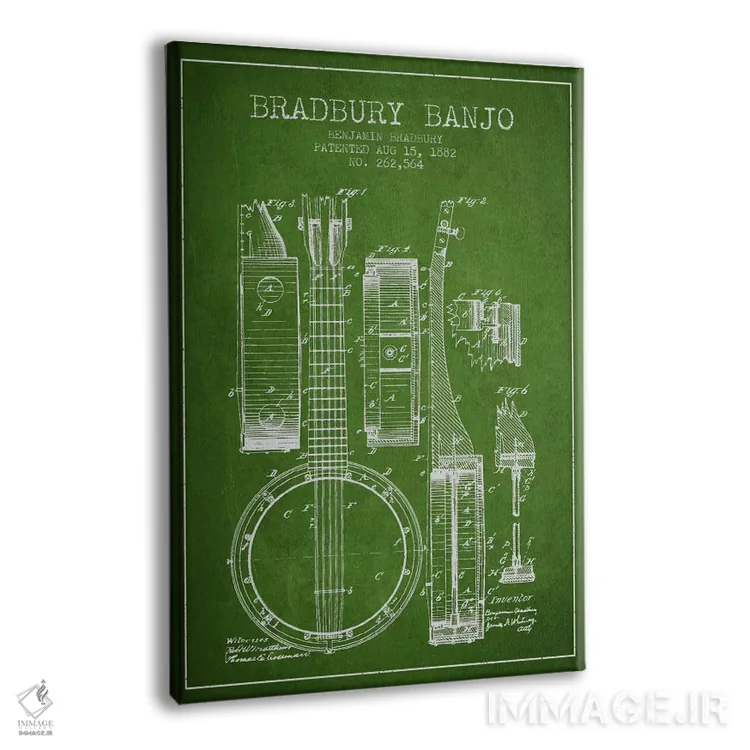 تابلو طرح ثبت اختراع بانجو (سبز) اثر پیکسل کهنه (استودیو/نام هنری)