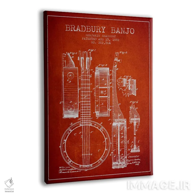 تابلو طرح ثبت اختراع بانجو (قرمز) اثر پیکسل کهنه (استودیو/نام هنری)