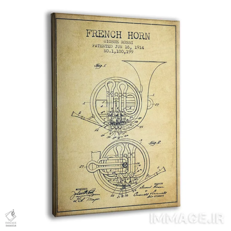 تابلو طرح ثبت اختراع هورن (کهنه) (ساز بادی برنجی) اثر پیکسل کهنه (استودیو/نام هنری) - نمای پرسپکتیو محصول