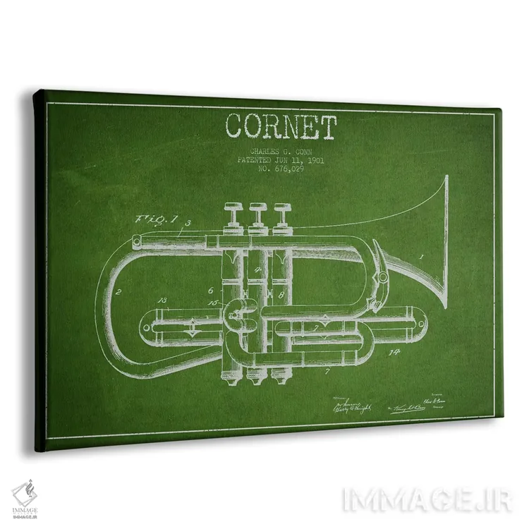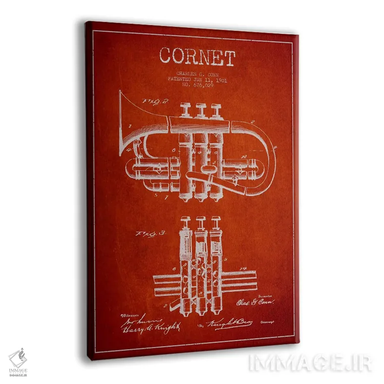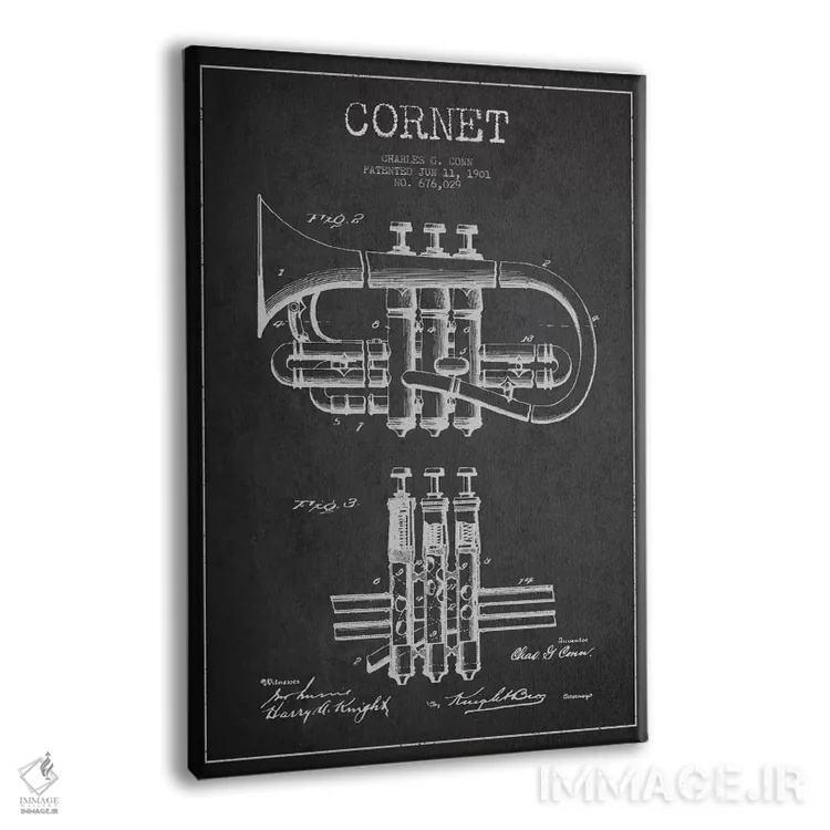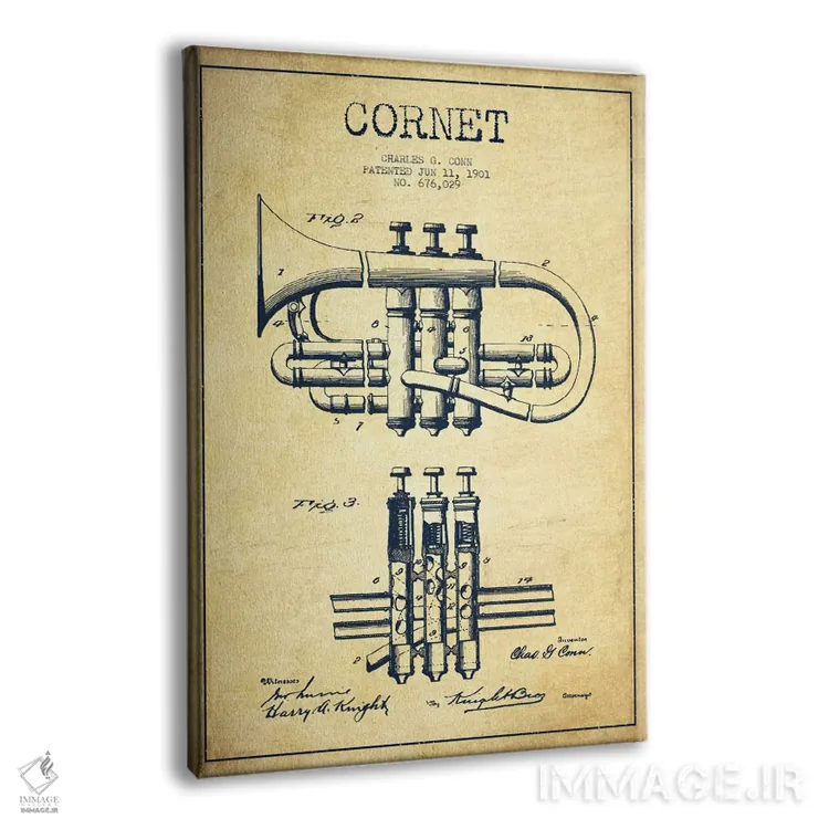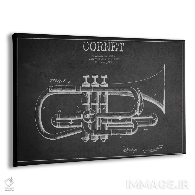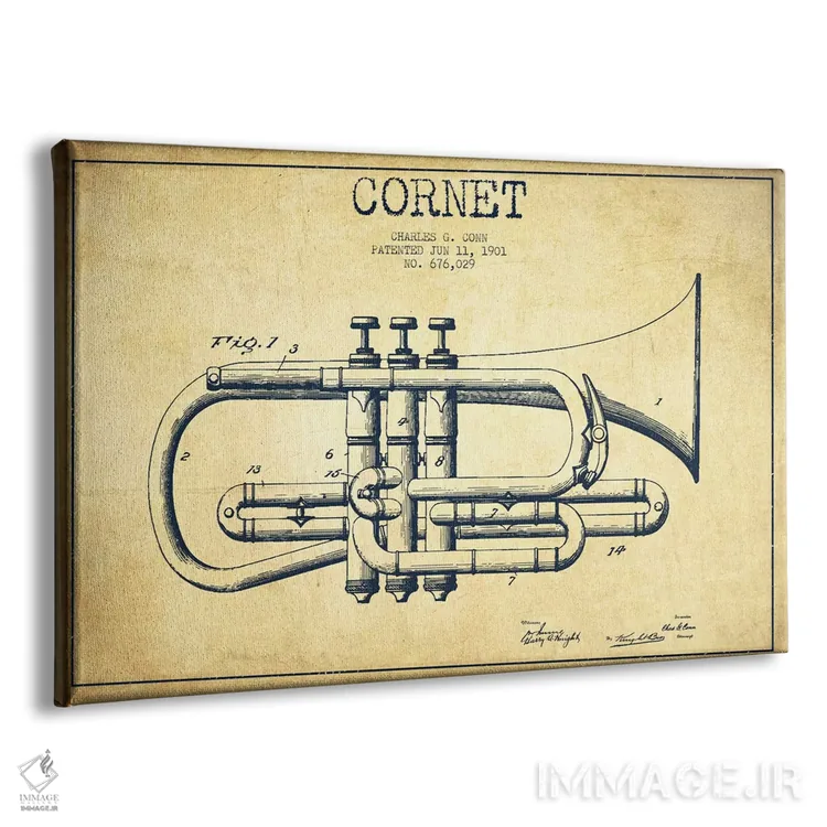 تابلو طرح ثبت اختراع کورنت (زغالی) (ساز بادی برنجی شبیه ترومپت) اثر پیکسل کهنه (استودیو/نام هنری)