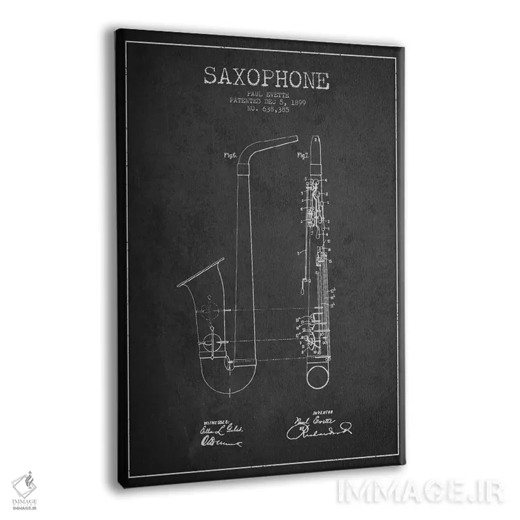 تابلو طرح ثبت اختراع ساکسوفون (زغالی) اثر پیکسل کهنه (استودیو/نام هنری) - نمای پرسپکتیو محصول