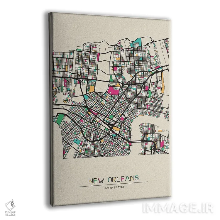 تابلو نقشه انتزاعی شهر نیواورلئان اثر جازبری بلو (هنرمند مدرن/برند هنری)