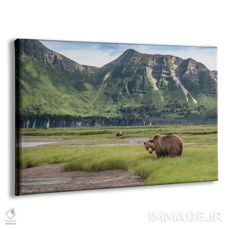 تابلو خرس قهوه‌ای ساحلی با دو توله بهاری‌اش در هالو بی، پارک ملی کاتمای، آلاسکا اثر دیزاین پیکس - نمای پرسپکتیو محصول