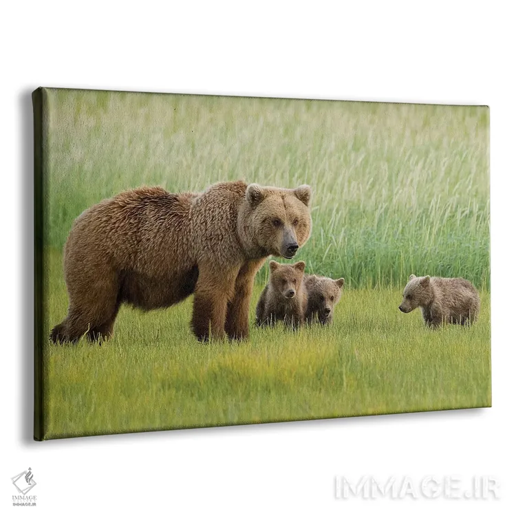 تابلو خرس گریزلی ساحلی با توله‌هایش در هالو بی، پارک ملی کاتمای آلاسکا اثر دیزاین پیکس - نمای پرسپکتیو محصول