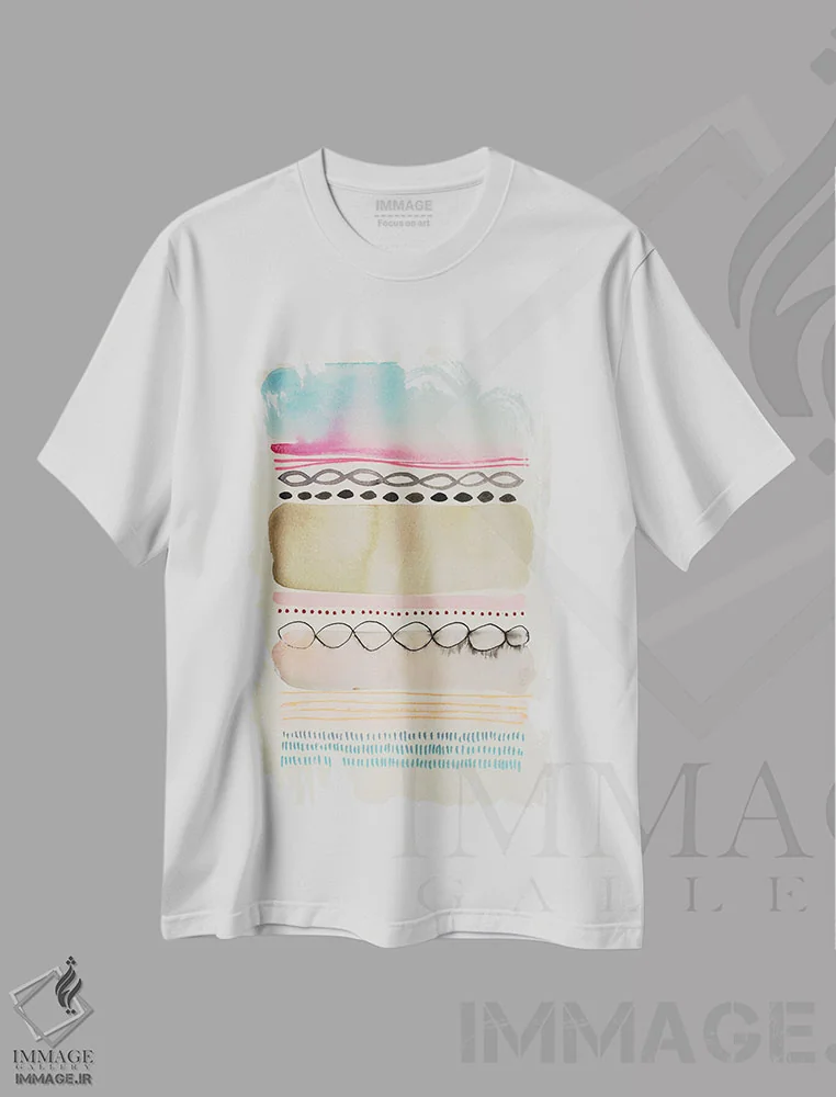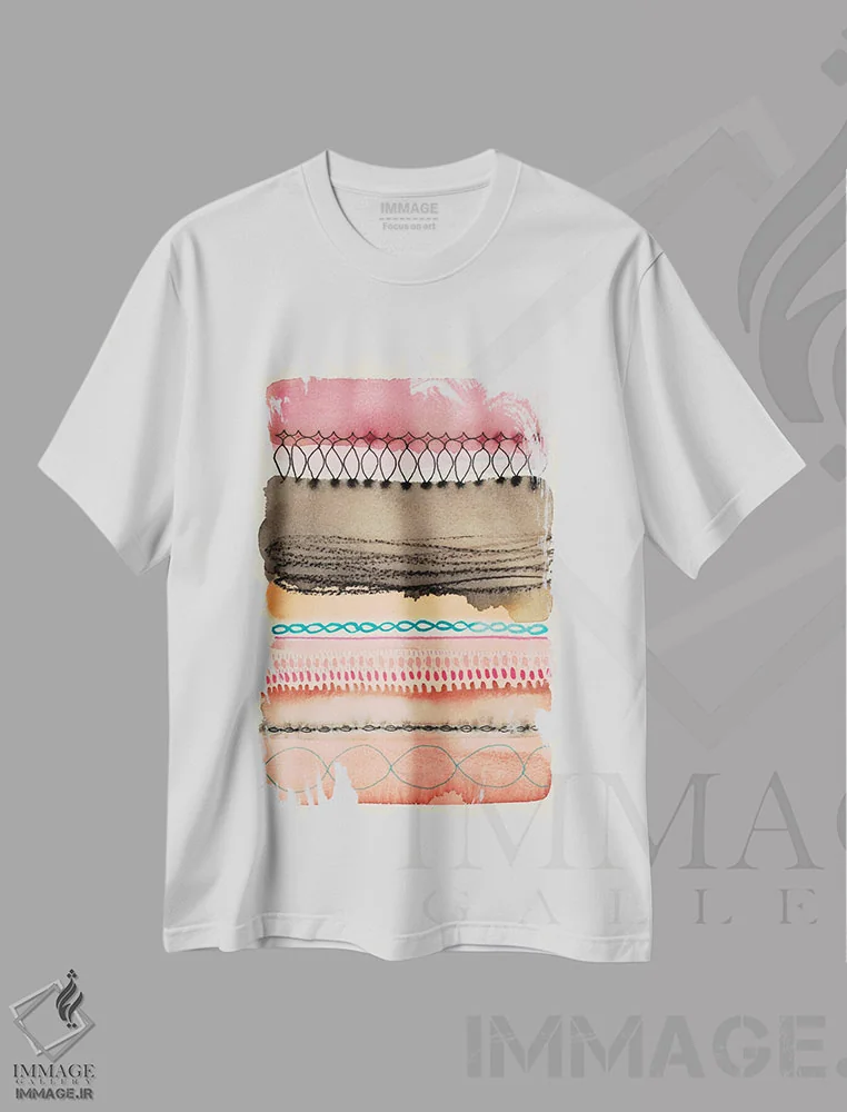 تیشرت سفید طرح دار مرز ۲، آبستره اثر فِیث ایوانز-سیلز | فروشگاه ایماژ تیشرت طرح دار مرز اثر فِیث ایوانز-سیلز