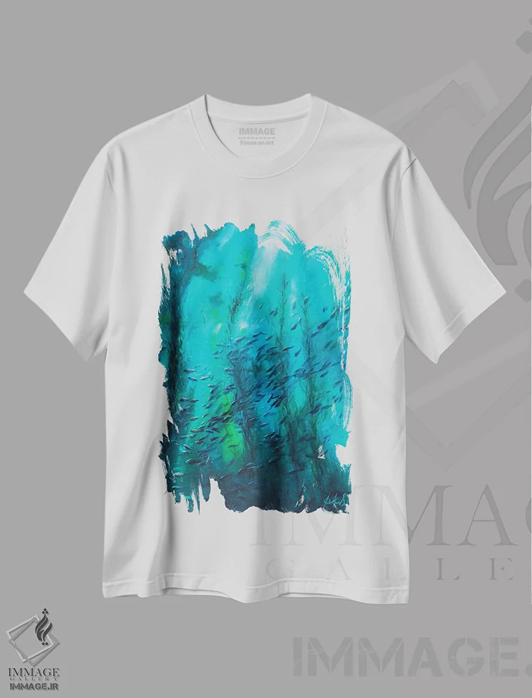 تیشرت سفید طرح دار الیاف ۲، آبستره اثر دیزاین فابریکن | فروشگاه ایماژ تیشرت طرح دار الیاف اثر دیزاین فابریکن