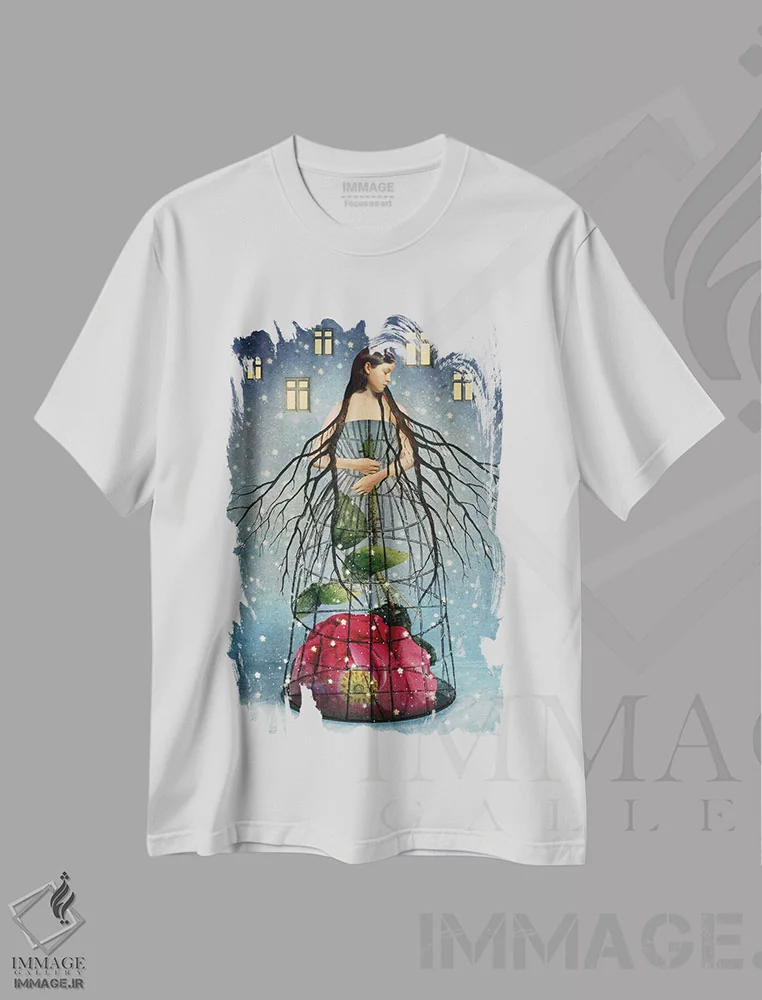 تیشرت سفید طرح دار پنج سکه، هنر فاخر معاصر اثر کاترین ولز-استاین | فروشگاه ایماژ