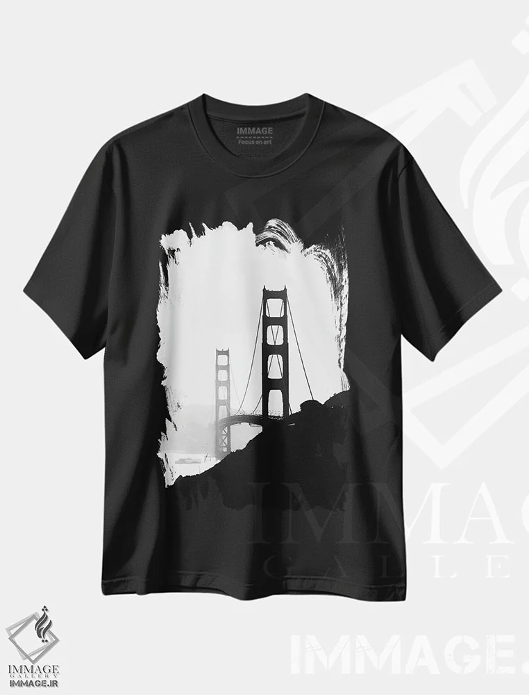 تیشرت مشکی طرح دار پل گلدن گیت، عکاسی سیاه و سفید اثر استیفن هاجتس | فروشگاه ایماژ تیشرت طرح دار پل گلدن گیت اثر استیفن هاجتس