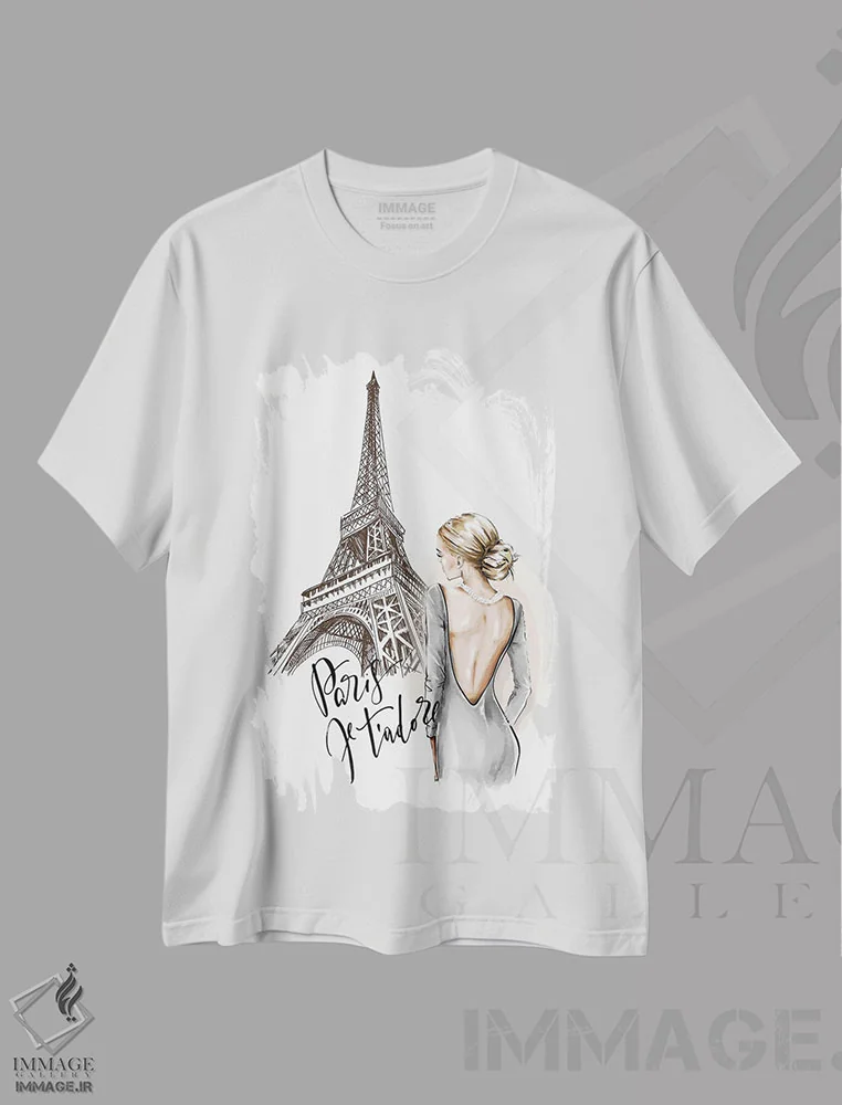 تیشرت سفید طرح دار عشق پاریس، تزئینی اثر هدر گری | فروشگاه ایماژ تیشرت طرح دار عشق پاریس اثر هدر گری