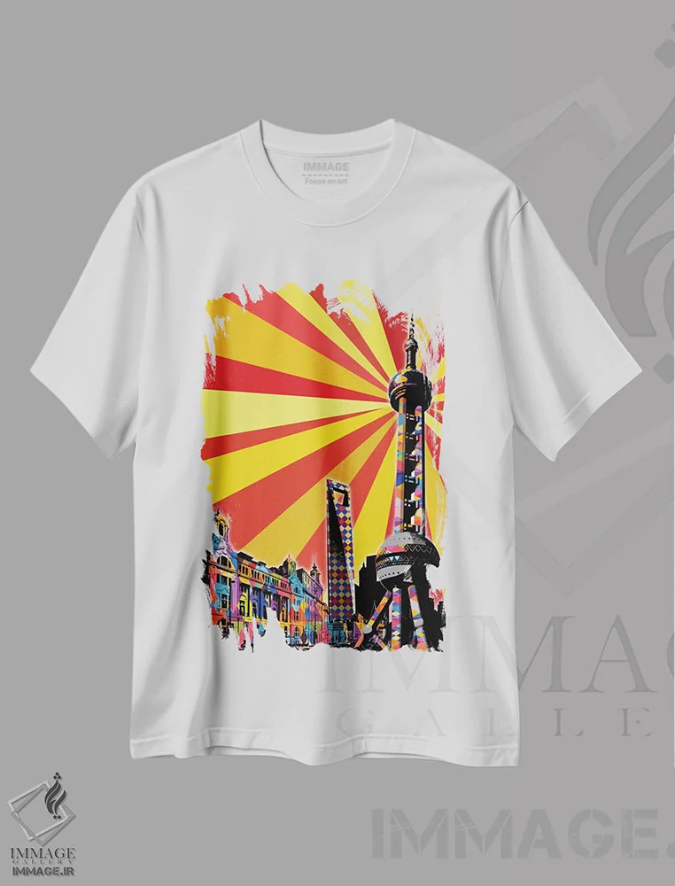 تیشرت سفید طرح دار پاپ سایکدلیک شانگهای، هنر دیجیتال اثر فایو بای فایو کالکتیو | فروشگاه ایماژ تیشرت طرح دار پاپ سایکدلیک شانگهای اثر فایو بای فایو کالکتیو