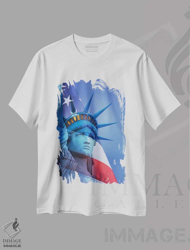 تیشرت سفید طرح دار آثار جینز گالری - immage.ir تیشرت طرح دار آمریکا، نوادا، لاس وگاس. ترکیب تندیس آزادی و پرچم آمریکا اثر جینز گالری