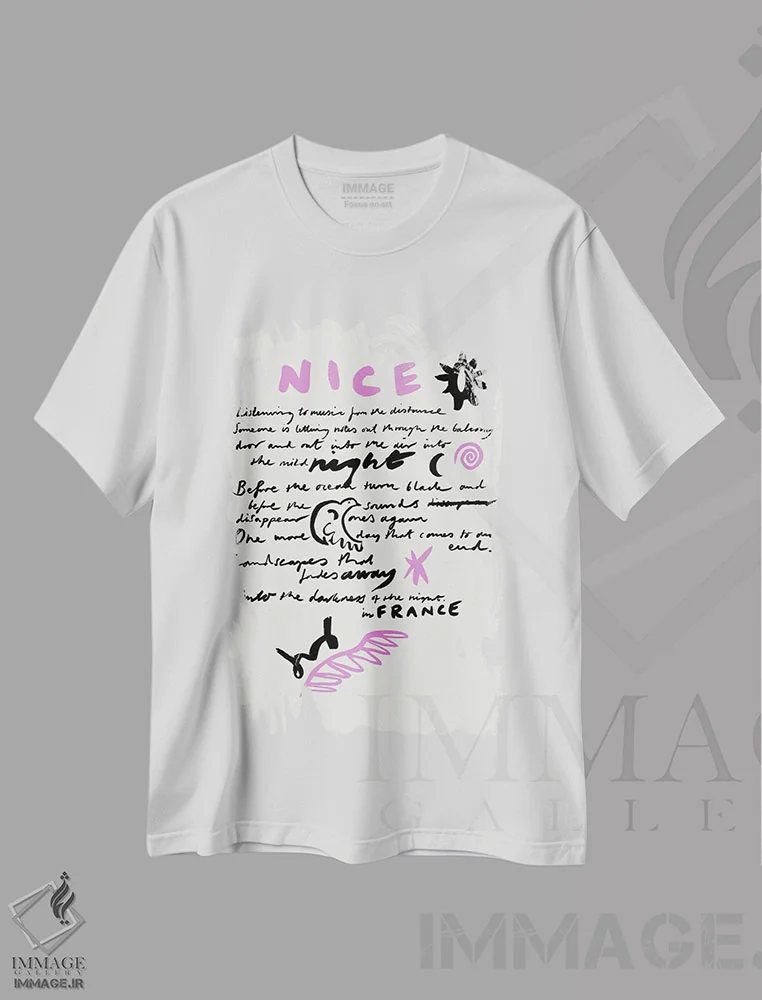 تیشرت سفید طرح دار تابستان در نیس، تزئینی اثر کارولینا کلینگ | فروشگاه ایماژ تیشرت طرح دار تابستان در نیس اثر کارولینا کلینگ