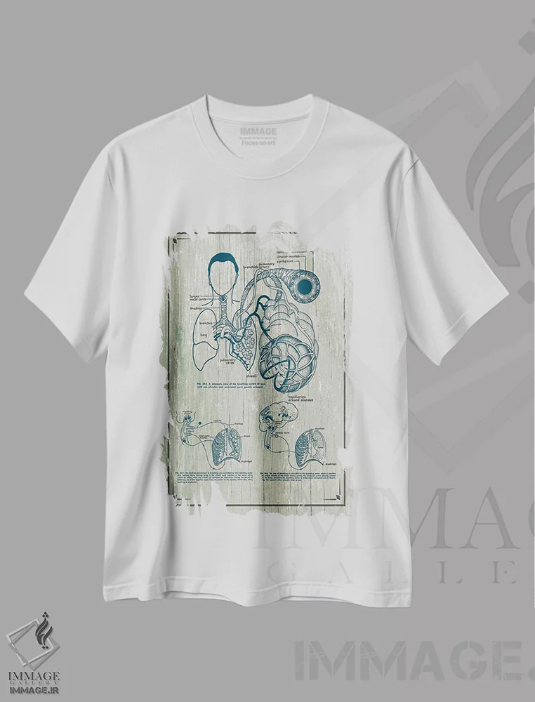 تیشرت سفید طرح دار آناتومی ریه ها، تزئینی اثر چارت اسمارت دکور | فروشگاه ایماژ تیشرت طرح دار آناتومی ریه ها اثر چارت اسمارت دکور