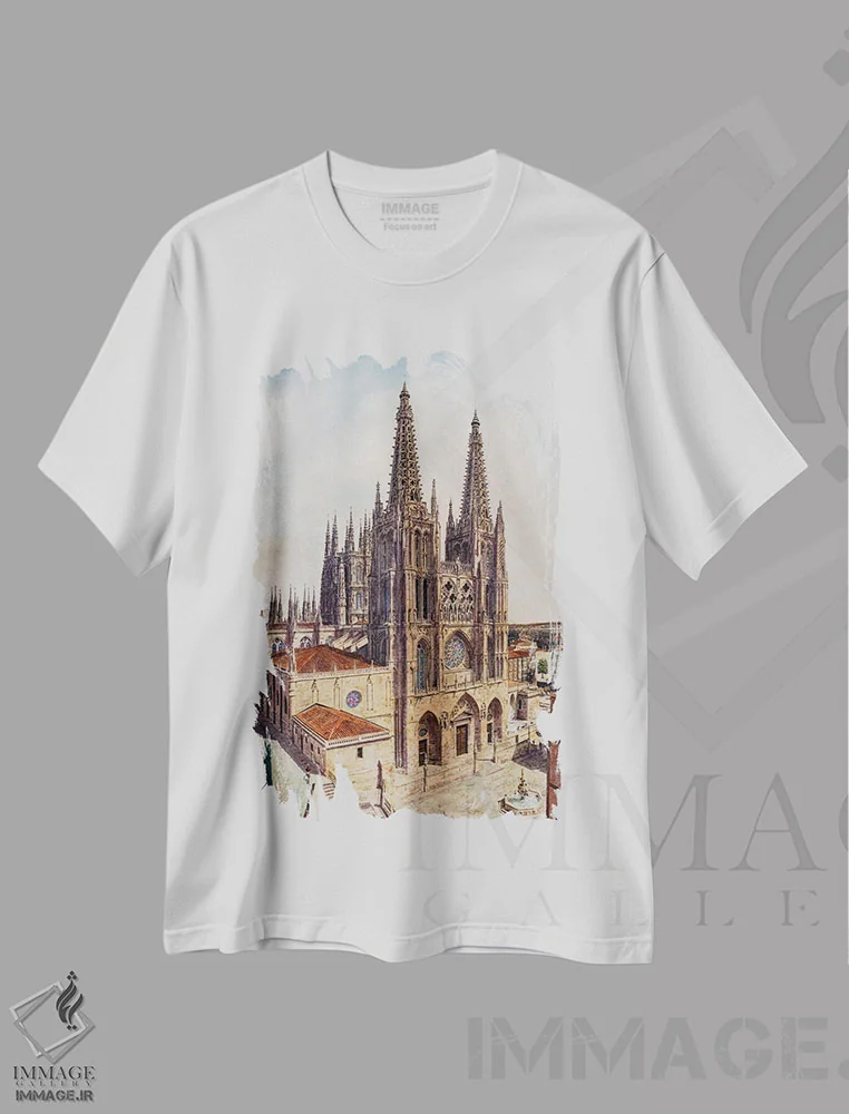 تیشرت سفید طرح دار کلیسای جامع بورگوس، مدیوم اثر کارلوس آریاگا | فروشگاه ایماژ تیشرت طرح دار کلیسای جامع بورگوس اثر کارلوس آریاگا