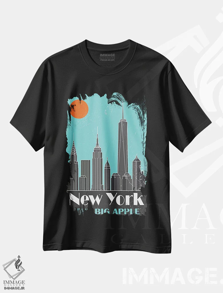 تیشرت مشکی طرح دار نیویورک، آبی آسمانی، تزئینی اثر فلای گرافیکس | فروشگاه ایماژ تیشرت طرح دار نیویورک، آبی آسمانی اثر فلای گرافیکس