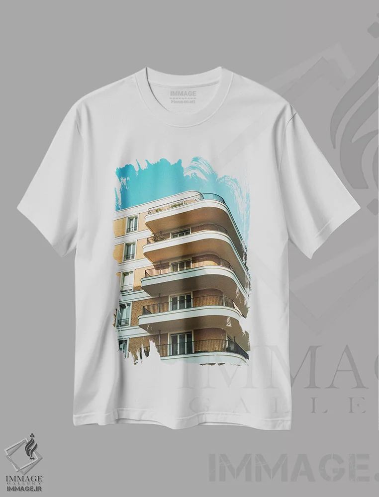 تیشرت سفید طرح دار ساختمان های مدرن، مدیوم اثر مانجیک پیکچرز | فروشگاه ایماژ تیشرت طرح دار ساختمان های مدرن اثر مانجیک پیکچرز