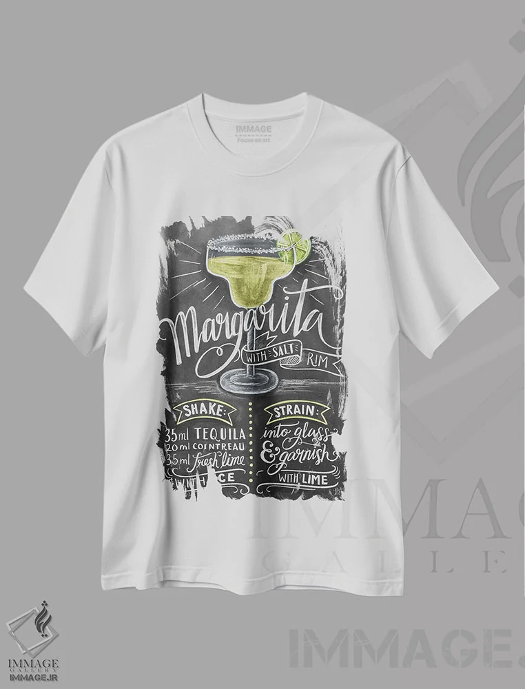 تیشرت سفید طرح دار دستور تهیه مارگاریتا، دست نقاشی و طراحی دستی اثر لیلی و ول | فروشگاه ایماژ تیشرت طرح دار دستور تهیه مارگاریتا اثر لیلی و ول