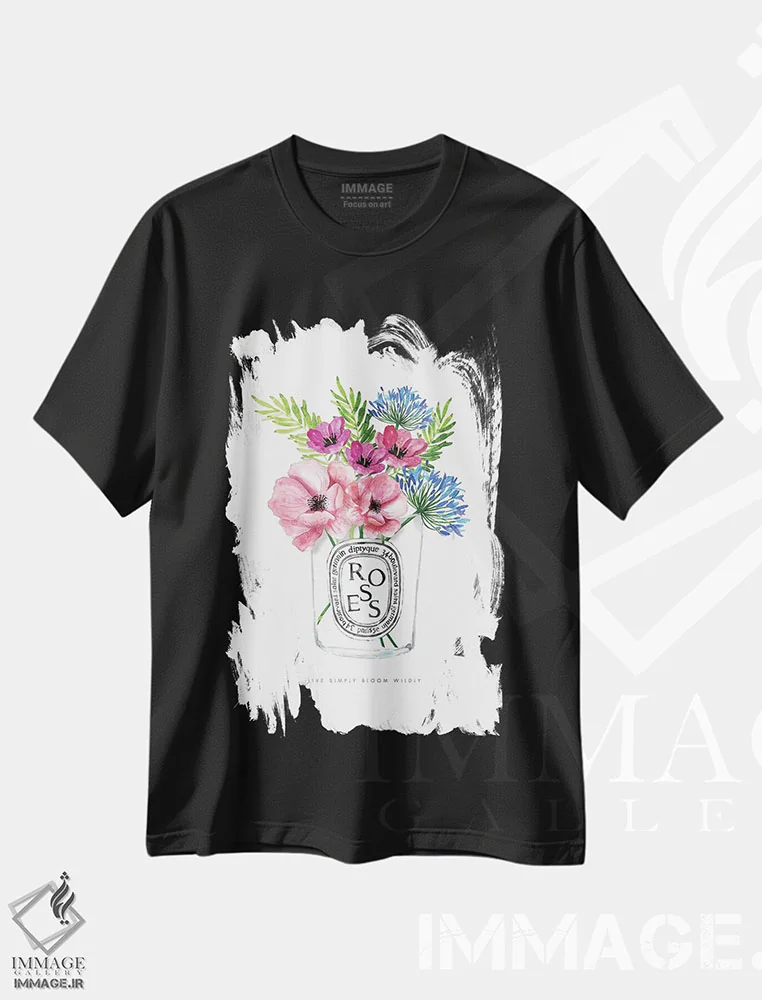تیشرت مشکی طرح دار آغوش گلی، دکور معاصر اثر کریتیو اینگرید | فروشگاه ایماژ
