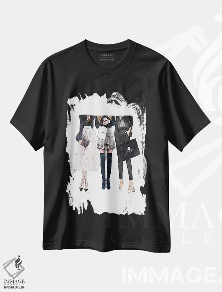 تیشرت طرح دار سه دوست صمیمی مشکی و صورتی اثر آماندا گرینوود