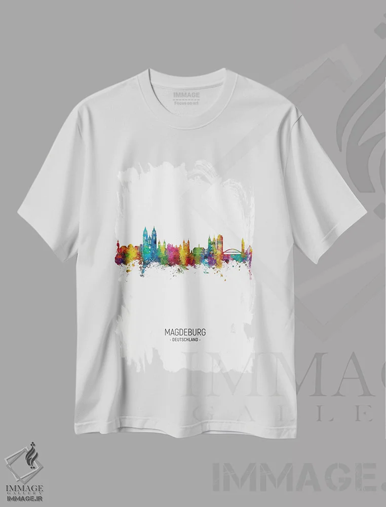 تیشرت سفید طرح دار – تیشرت شهری ,منظرهٔ پرتره ماگدبورگ، آلمان اثر مایکل تامپست فروشگاه ایماژ