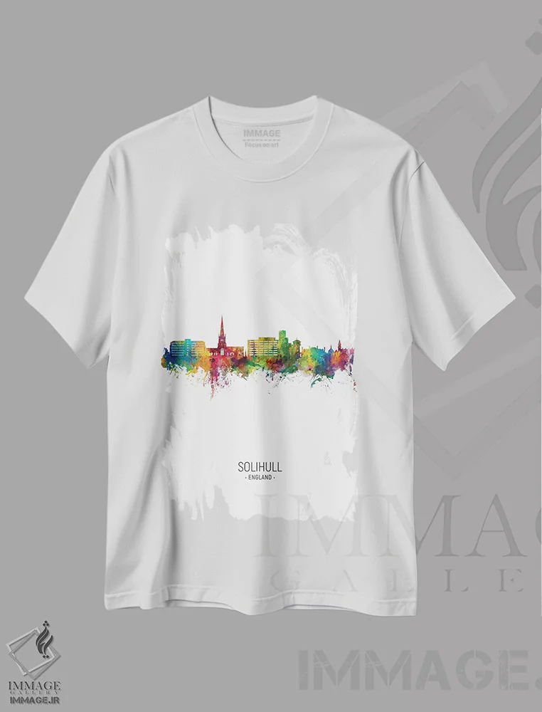 تیشرت سفید طرح دار – تیشرت تایپوگرافی ,نمای عمودی خط افق سولیهال، انگلستان اثر مایکل تامپست فروشگاه ایماژ
