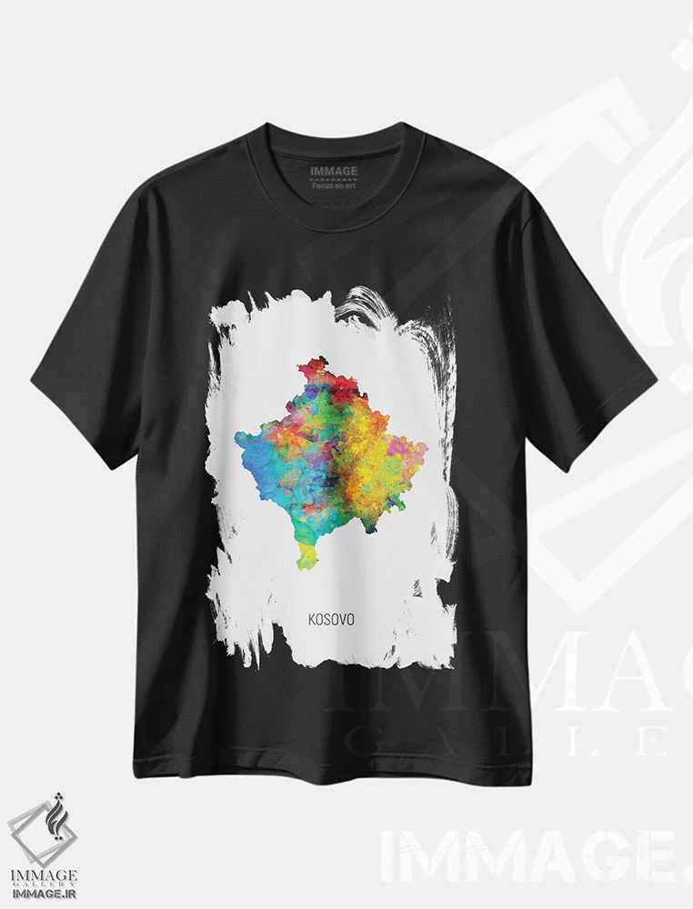 تیشرت مشکی طرح دار – تیشرت مینیمال ,نقشه کوزوو اثر مایکل تامپست فروشگاه ایماژ
