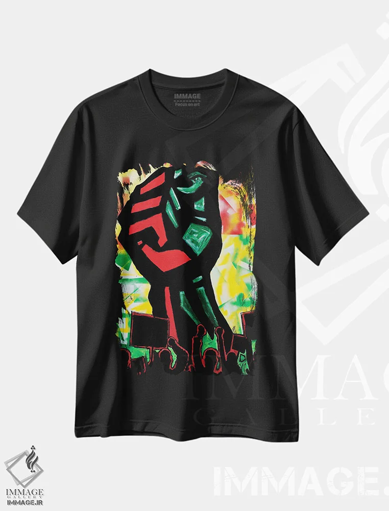 تیشرت مشکی طرح دار مبارزه با ظلم ۲، هنر آمریکایی آفریقایی تبار اثر جسیکا اُ. | فروشگاه ایماژ تیشرت طرح دار مبارزه با ظلم اثر جسیکا اُ.