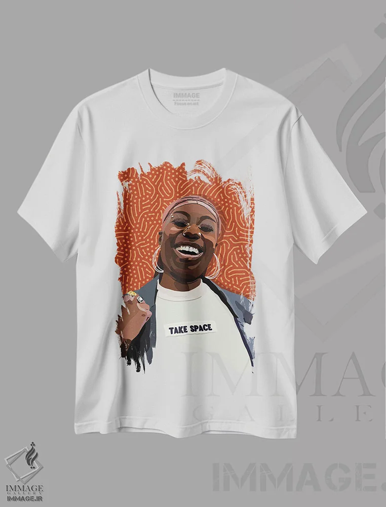 تیشرت سفید طرح دار فضا را بگیر، هنر آمریکایی آفریقایی تبار اثر آرت پِی سی ئی | فروشگاه ایماژ تیشرت طرح دار فضا را بگیر اثر آرت پِی سی ئی