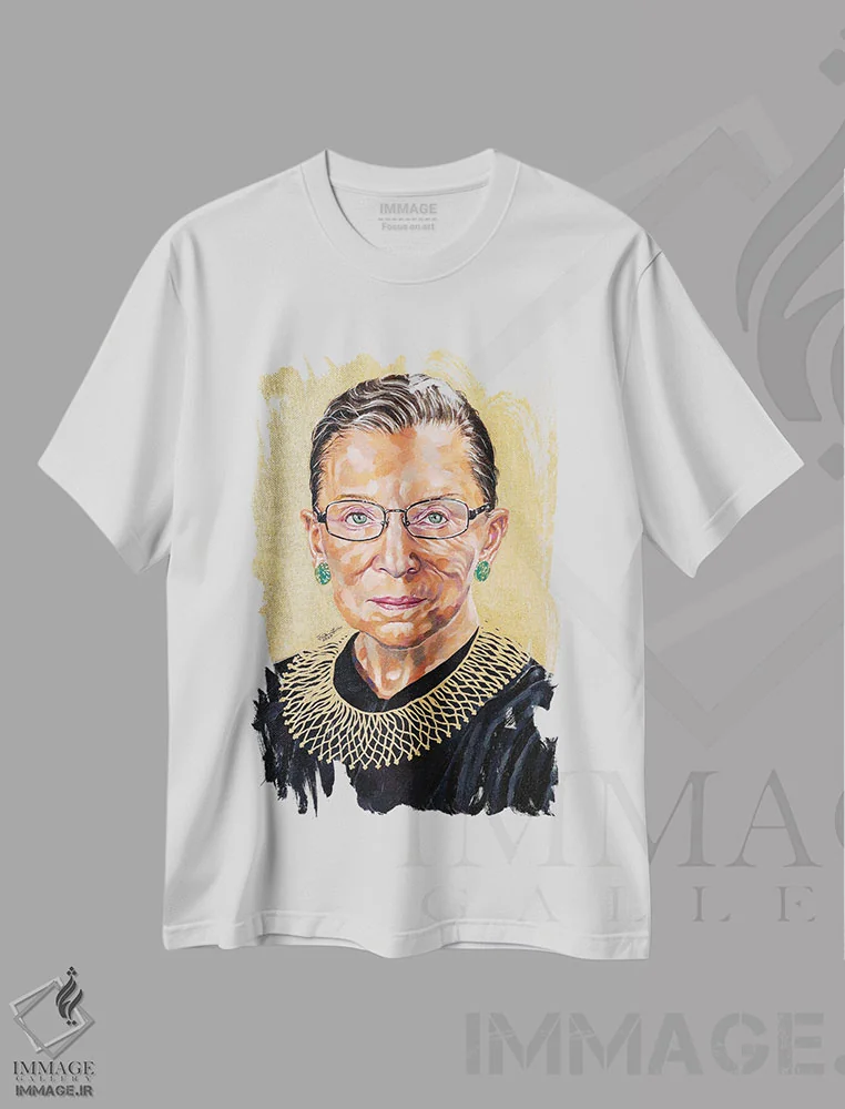 تیشرت سفید طرح دار روث بیدر گینزبرگ، هنر دیجیتال اثر جسیکا استمپل | فروشگاه ایماژ تیشرت طرح دار روث بیدر گینزبرگ اثر جسیکا استمپل