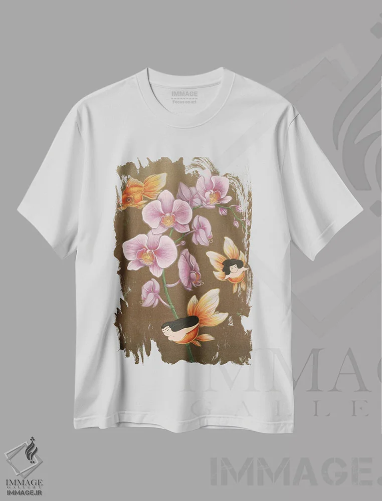 تیشرت سفید طرح دار گاندام، جاردینی ریالی، هنر دیجیتال اثر آندریا گاتی | فروشگاه ایماژ تیشرت طرح دار گاندام، جاردینی ریالی اثر آندریا گاتی