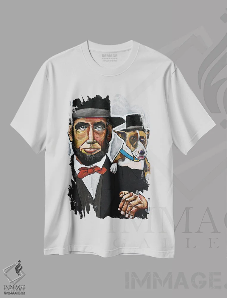 تیشرت طرح دار آبراهام لینکلن با سگش اثر دیویدای هینْدز