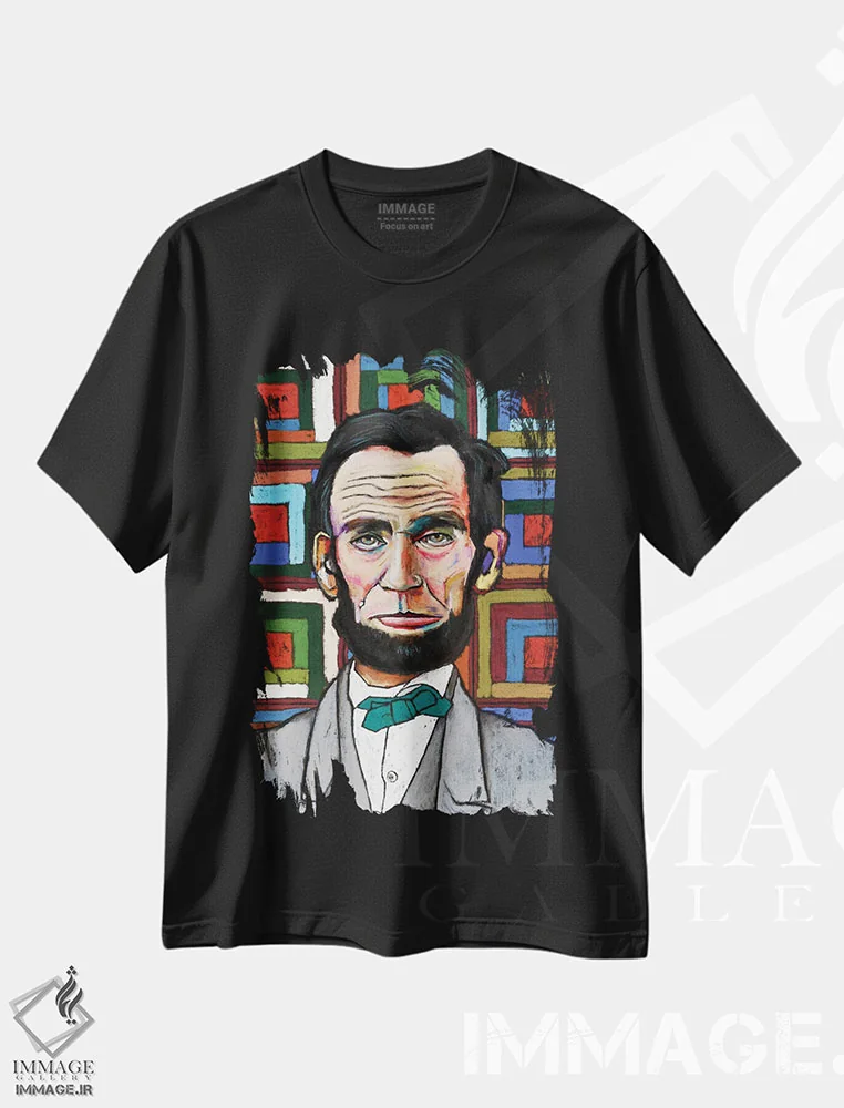 تیشرت طرح دار شخصیت آبراهام لینکلن، تایپوگرافی اثر آدریان بالدُوینو | فروشگاه ایماژ